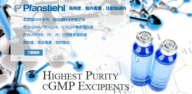 “熱烈祝賀Pfanstiehl的注射級甘氨酸Glycine(G-140)喜獲CDE登記號F20250000403, 這是Pfanstiehl產品獲得的第18個CDE登記號!”甘氨酸在醫藥輔料制劑中應用廣泛,, 可作為緩沖劑,增溶劑,穩定劑等,具有諸多優勢。Pfanstiehl秉承一貫高品質理念,為滿足全球生物制藥行業對于高品質甘氨酸的需求,隆重推出的注射級甘氨酸Glycine (G-140), 具有超高純度,超低內毒素,超低金屬殘留的特點,單獨檢測29種金屬離子,并且新增DNA,RNA,DNA酶,RNA酶和脂肪酶,亞硝酸鹽等多項質量指標的檢測,符合多國藥典規定(USP, EP, BP, JPE, ChP),可用于生物治療性藥物和疫苗的生產。產品信息:· 產品名稱:Glycine, High Purity, Low Endotoxin, Low Metals, USP, EP, BP, JPE, ChP (G-140)· 中文名稱:甘氨酸· 分子式:C2H5NO2· 分子量:75.07 g / mol· CAS號:56-40-6· 產品貨號:G-140產品特點: · 超高純度,超低內毒素,超低微生物含量,超低金屬雜質殘留· 質量指標新增DNA,RNA,DNA酶,RNA酶,脂肪酶和亞硝酸鹽檢測· 符合多國藥典:USP, EP, BP, JPE, ChP· 符合ICH Q3D標準· 符合GMP標準· 已獲DMF和CDE登記號 產品應用:· 緩沖劑· 穩定劑· 增溶劑如果您對Pfanstiehl注射級別Glycine G-140感興趣,歡迎聯系Pfanstiehl 中國區代理商北京西美杰科技有限公司獲得如下詳細的產品概況說明文件和測試樣品。Pfanstiehl Inc.最新產品系列如下,歡迎聯系北京西美杰科技有限公司獲取100g裝免費樣品。北京西美杰科技有限公司為Pfanstiehl中國代理,為客戶提供完善的技術支持與售后服務。歡迎撥打西美杰客服電話400-050-4006或者登陸網站www_xmjsci_com.jzlmeng.com了解更多信息。 更多>